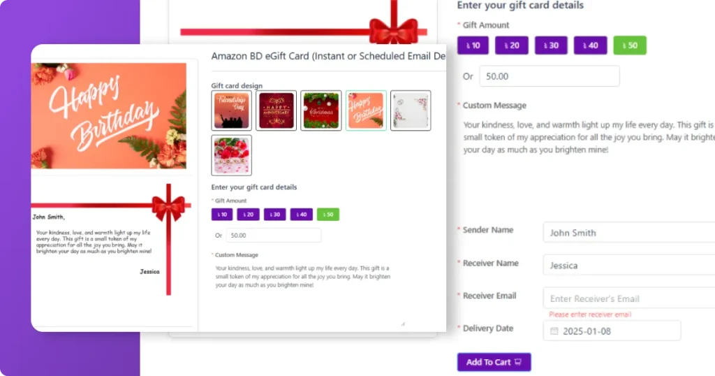Whether you’re a solo entrepreneur, a growing startup, or a large-scale retailer, our Gift Card Plugin is built to scale with your business. From holiday promotions and special occasions to corporate gifting, gift cards offer a flexible and powerful way to engage your audience.